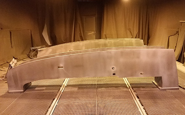 Teräsraepuhaltamon mitat ovat 8 m x 14 m. Tarvittaessa pystytään käsittelemään pitempiäkin kappaleita.