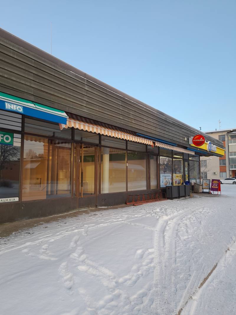 Siistikuntoinen liiketila keskeisellä paikalla. Halpa-Halli,Lankava ja R-Kioski vieressä. Isot näyteikkunat. Voidaan vuokrata myös lyhytaikaiseen käyttöön popup yms. Liiketilasta portaat alas eli voi käyttää myös varastotilaa liiketilana.